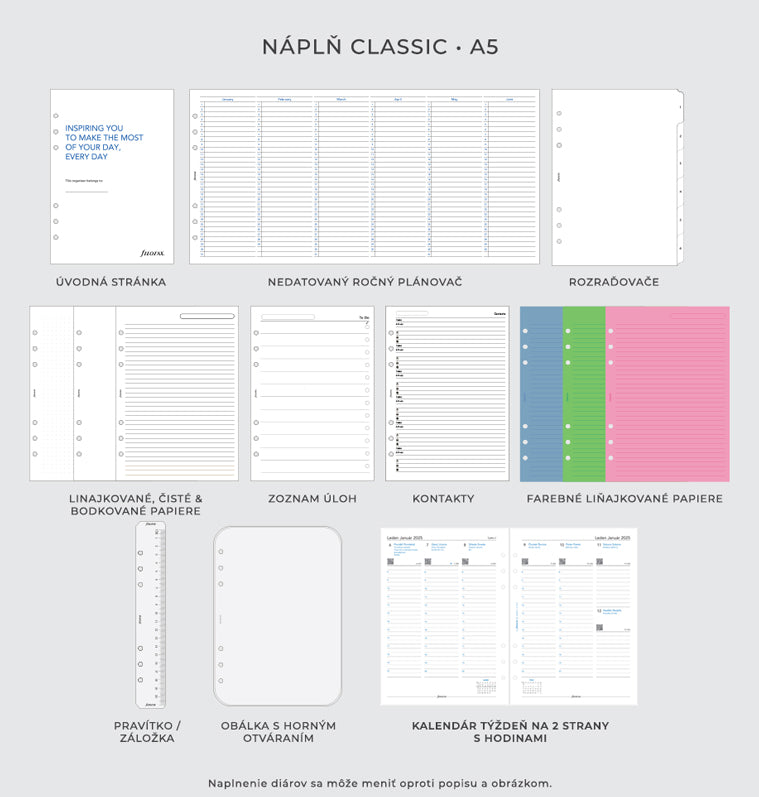 Ľavá strana dosiek: 5 vreciek na karty - 1 vertikálne vrecko - 1 vrecko na zips - pútko na pero