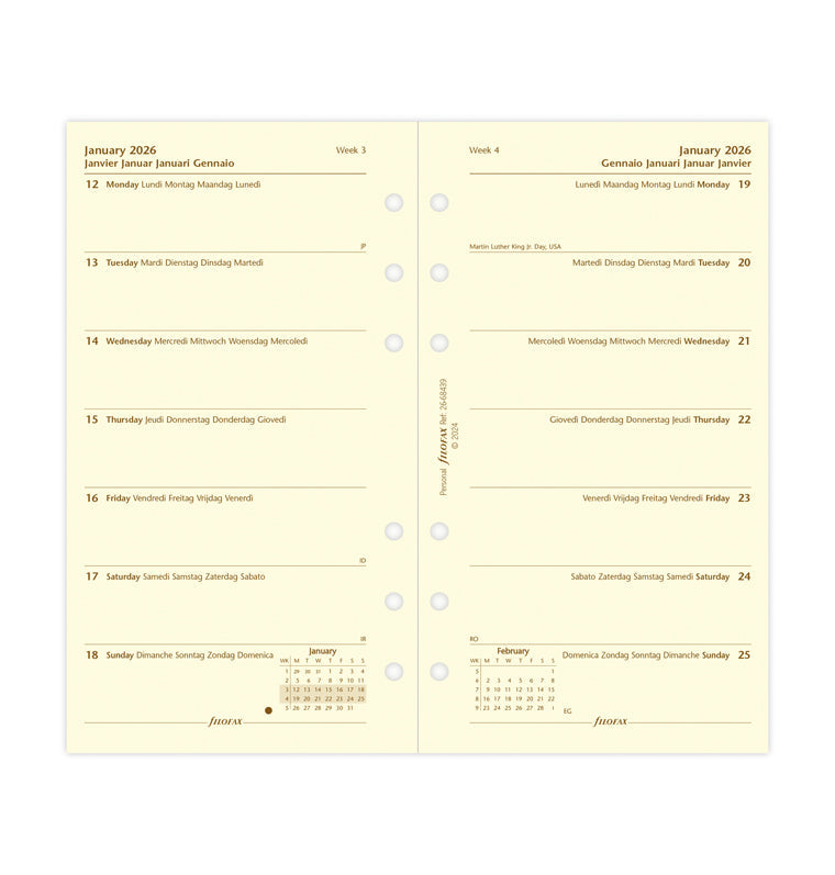 kalendár týždeň/1 strana 2026, Osobný, krémový, 5 jazykov