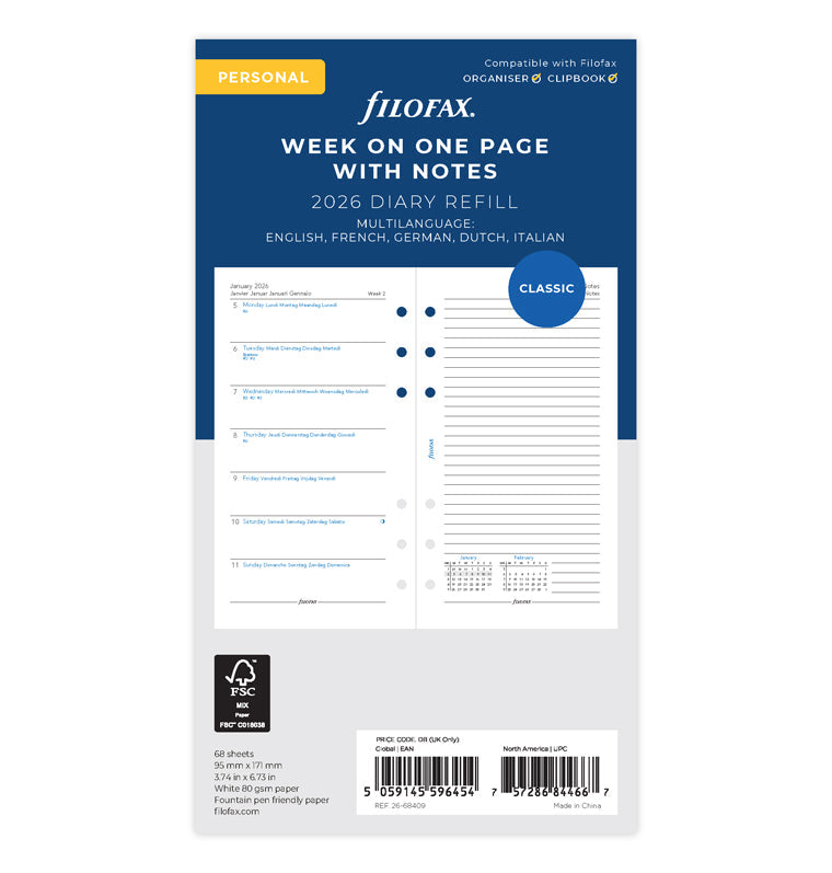 kalendár týždeň/1 strana s poznámkami 2026, Osobný, 5 jazykov